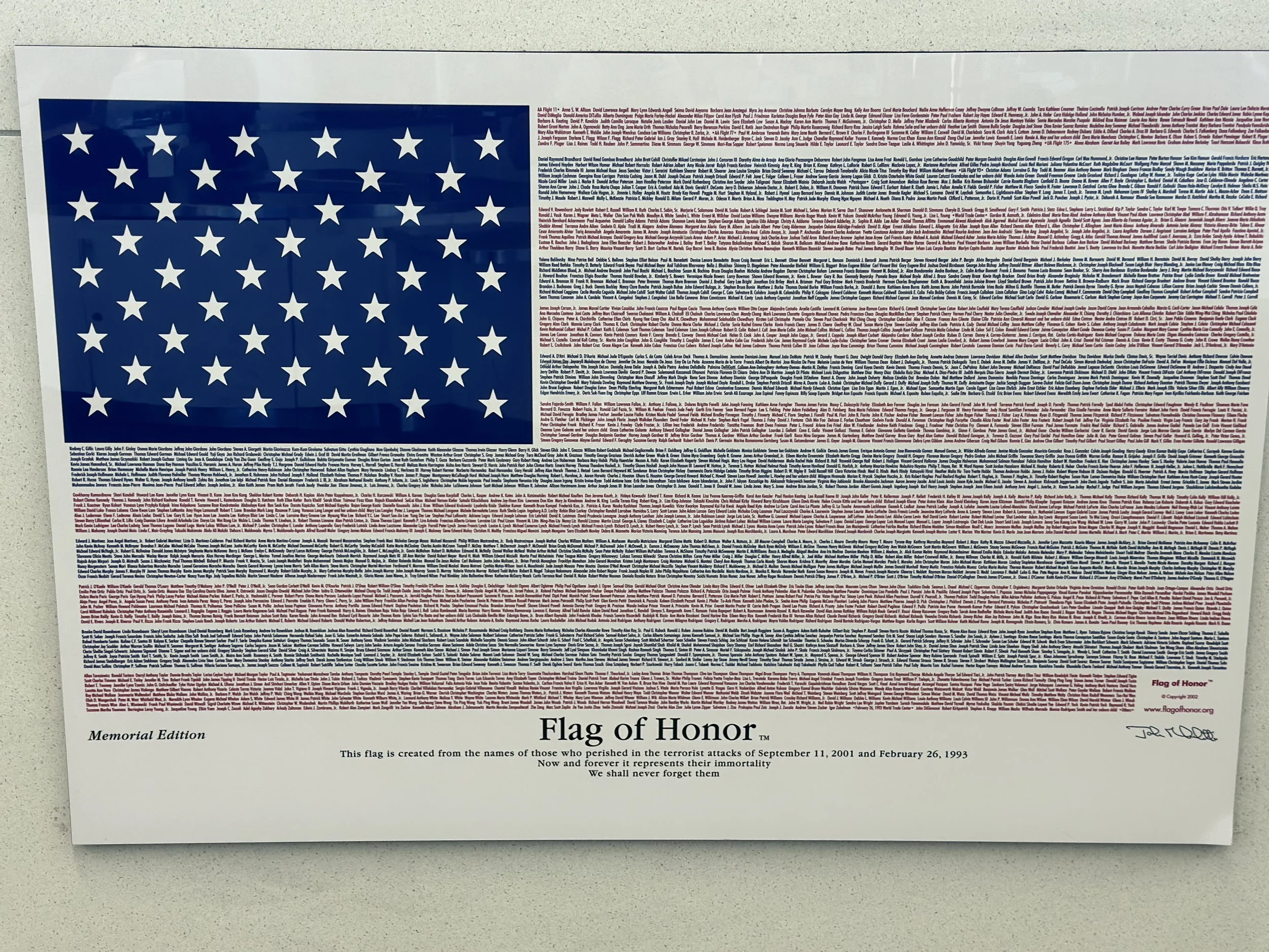 Joe Harrington 9/11/24 Joe Harrington 9/11/24 9/11/24 9/11/24This is a Flag of Honor poster that was made to remember the heroes of 9/11/21. This was taken at the U.S. Customs desk at LaGuardia International Airport in NYC. Read More